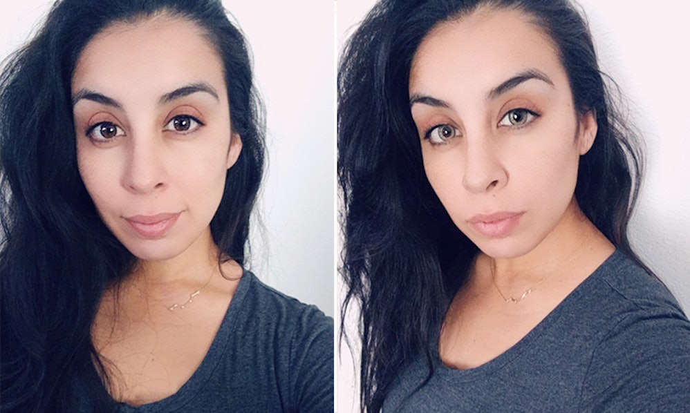 Once both lenses are in, I love them so much, I can’t take it. It’s basically everything I love about Snapchat filters. It changes the color of my eyes, makes them look bigger, and even gives them a glossy twinkle. I’m not the only one who thinks so either. Even Kim Kardashian swears by contacts now. In a post on Instagram (which went up a day after I bought mine, thank you very much), she wrote, “New obsession. Colored contacts.”